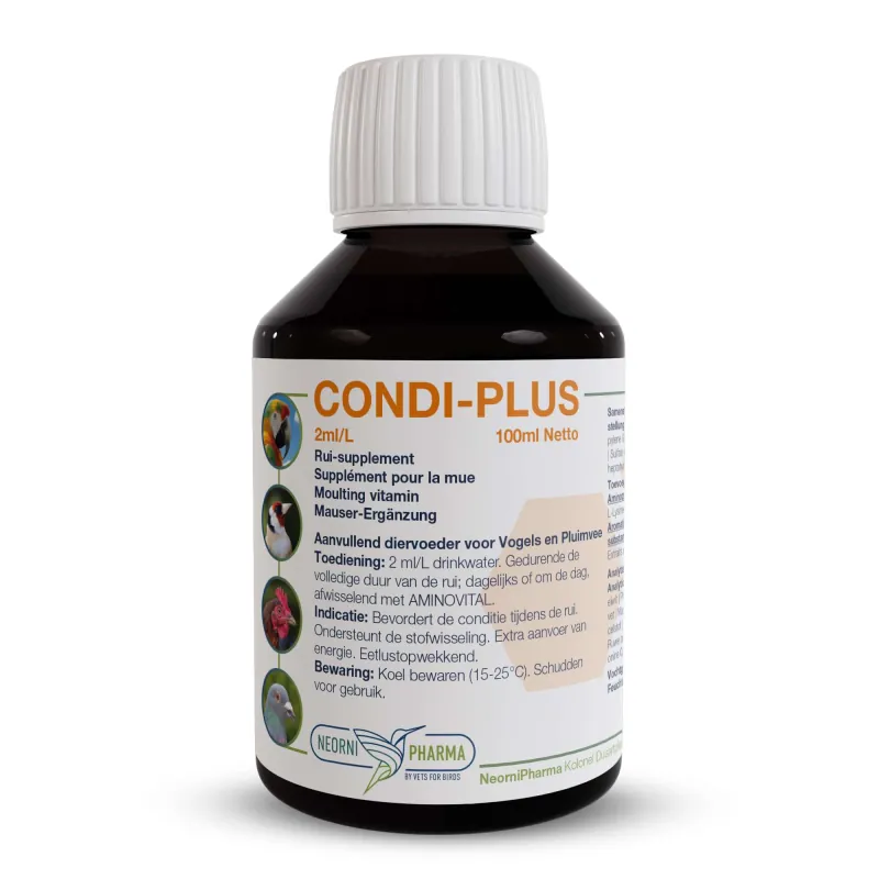De rui is een zware periode voor kippen. Ze verliezen hun oude veren en maken nieuwe aan. Dat kost enorm veel energie en voedingsstoffen. Condi-plus ondersteunt dit natuurlijke proces met extra vitamines, mineralen en aminozuren.