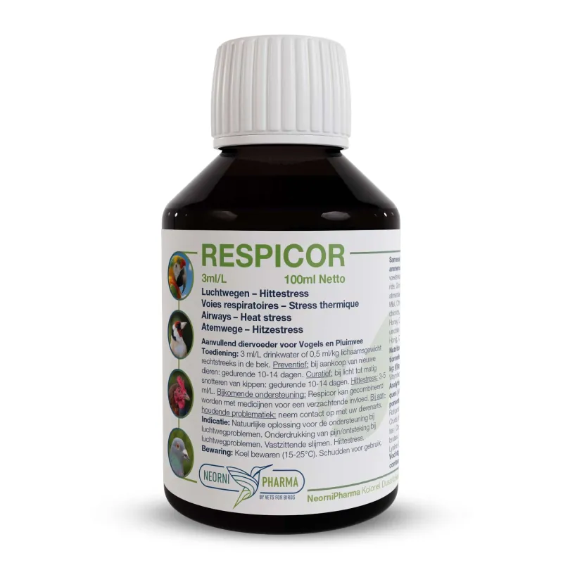 Respicor is jouw bondgenoot tijdens warme zomerdagen en stressvolle momenten. Het ondersteunt niet alleen de luchtwegen maar ook het hart en de bloedsomloop. Bij hitte krijgen kippen het zwaar, ze kunnen immers niet zweten.