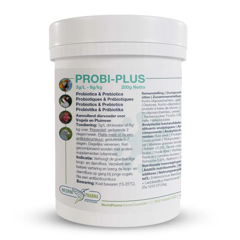 Een gezonde darm is de basis van een gezonde kip. In de darmen vindt 70% van het immuunsysteem plaats. Probi-plus bevat probiotica, goede bacteriën die de darmflora in balans houden en slechte bacteriën verdringen.